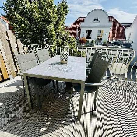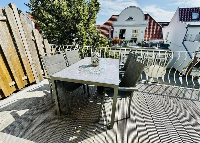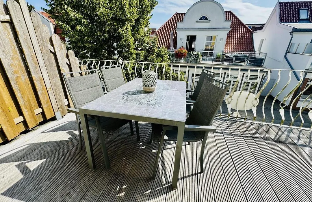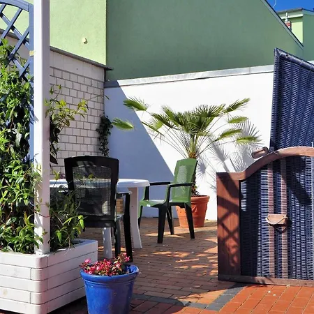 Die Ferienwohnung Strandkorb liegt lediglich 150 Meter vom Strand Strand Warnemuende entfernt und verfügt über einen Balkon und eine Essecke.